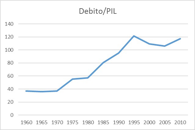 Come si può osservare l’andamento crescente del rapporto debito pubblico/PIL si è arrestato nella seconda metà degli anni ’90 quando, le autorità europee hanno iniziato ad emanare normative attinenti il debito pubblico e i vincoli di bilancio.