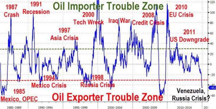 Il prezzo del petrolio è anche un indicatore di crisi finanziarie; basti vedere le variazioni intercorse dal 1985 ai giorni nostri, quando il prezzo scende troppo il mercato anticipa uno shock.