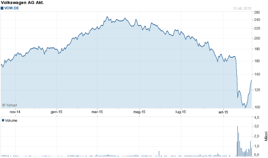 Nel seguente grafico si può notare l’effetto dello scandalo sul valore del titolo tedesco.