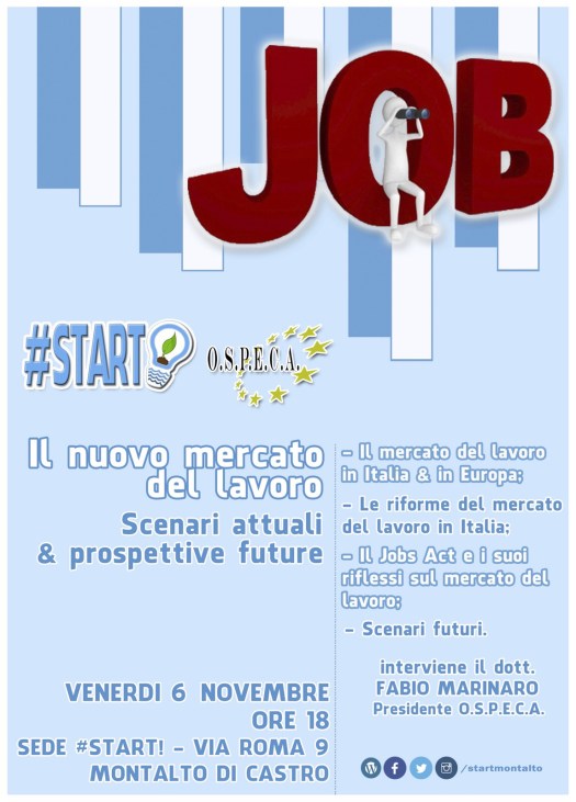 Il 6 novembre il nostro osservatorio in collaborazione con l’associazione #start discuterà a Montalto della riforma del lavoro Job Acts del Governo Renzi rappresenta l’ultima tappa del percorso di evoluzione che negli ultimi anni ha visto protagonista il settore del lavoro in Italia.