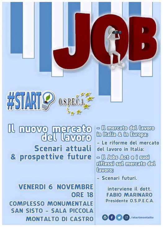 Il 6 novembre il nostro osservatorio in collaborazione con l’associazione #start discuterà a Montalto della riforma del lavoro Job Acts del Governo Renzi che rappresenta l’ultima tappa del percorso di evoluzione che negli ultimi anni ha visto protagonista il settore
