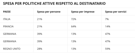 Le risorse finanziarie per i Centri per l’impero sono solamente il 0,03% del Pil a confronto di una media europea del 0,25%. Inoltre tra il 2008 e il 2011 i principali paesi dell’area euro hanno reagito alla crisi finanziando ulteriormente i servizi pubblici per l’impiego, agendo sulla spesa e sugli addetti; l’Italia, al contrario in termini assoluti ha investito quasi 200 milioni di euro in meno rispetto al 2008.
